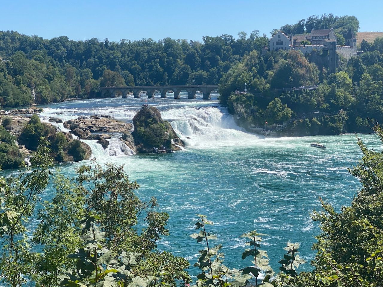Von Konstanz aus ging es erstmal über die Grenze in die Schweiz und dann immer weiter Richtung Westen entlang des Bodenseeausläufers. Ein schöner Radweg mit tollen Ausblicken brachte mich zur Rheinmündung. Ab da ging es auf kleinen Straßen nach Schaffhausen. Nach einem Mittagessen ging es weiter an die Rheinfälle. Die Alternativroute über Winterthur war etwas zu schnell und hügeliger.