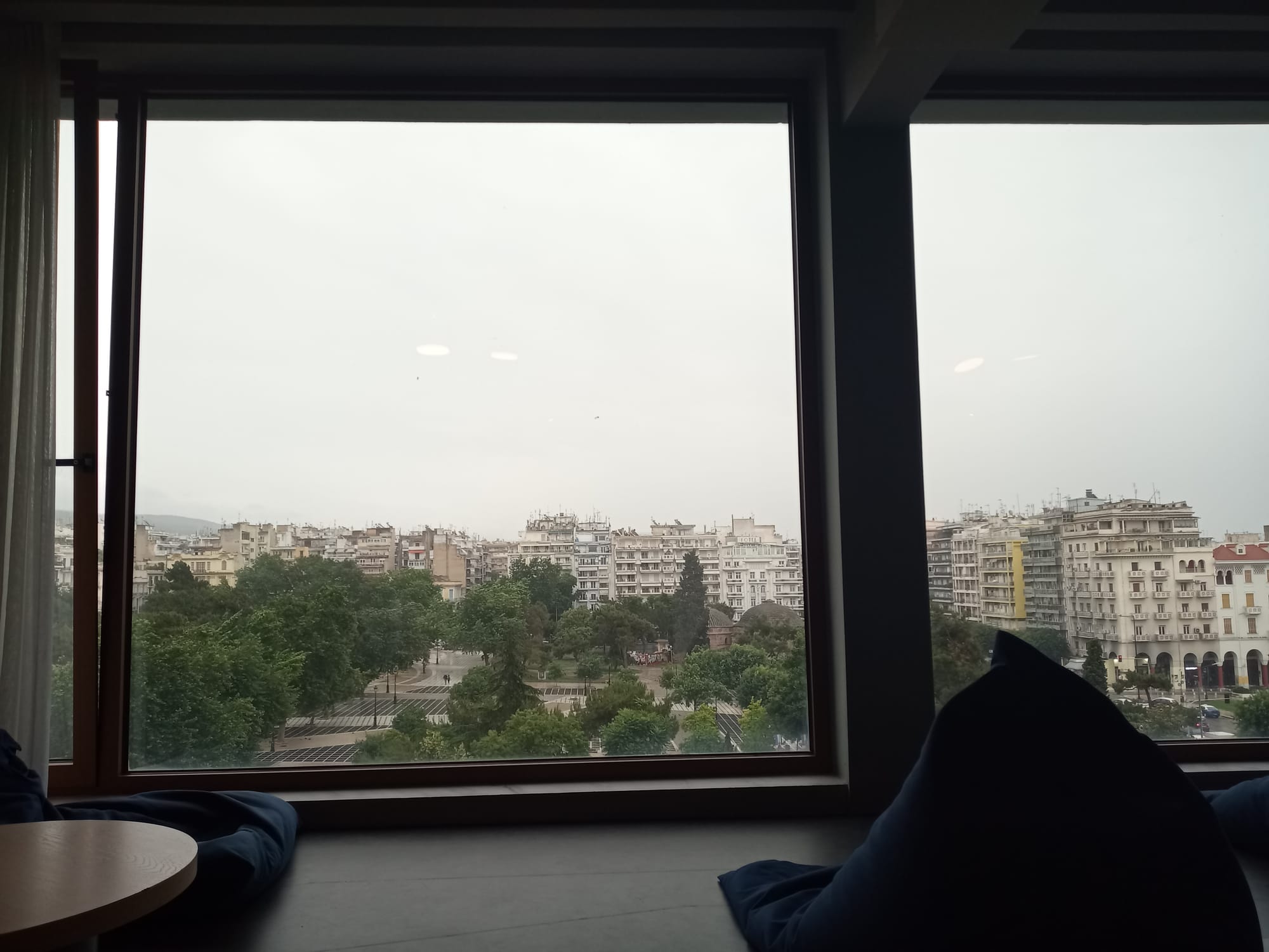 Ausgeschlafen kaufte ich mir zuerst ein Frühstück und genoss danach bis zum Mittagessen die Aussicht vom Aufenthaltsraum auf den Park im Stadtzentrum. Zum Mittagessen suchte ich mir ein Gyros-Restaurant aus und ging damit die Highlights der Stadt ab. Für T-Shirt und kurze Hose war es fast zu kalt.