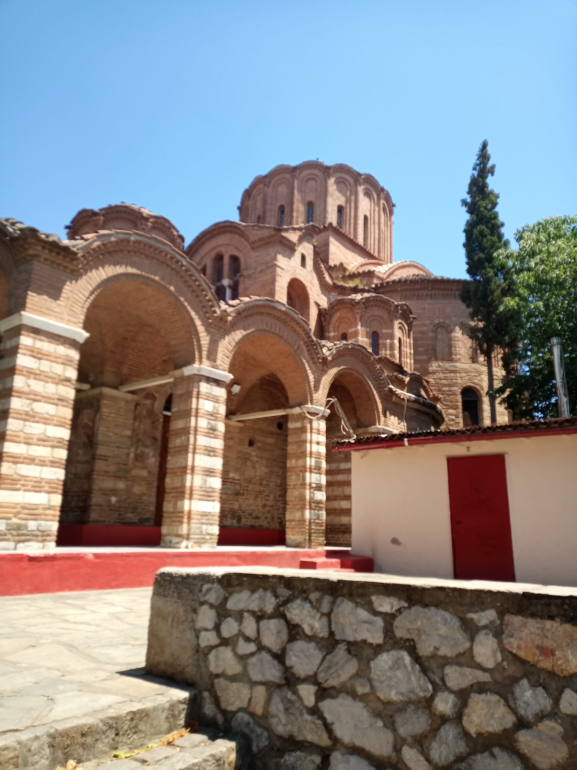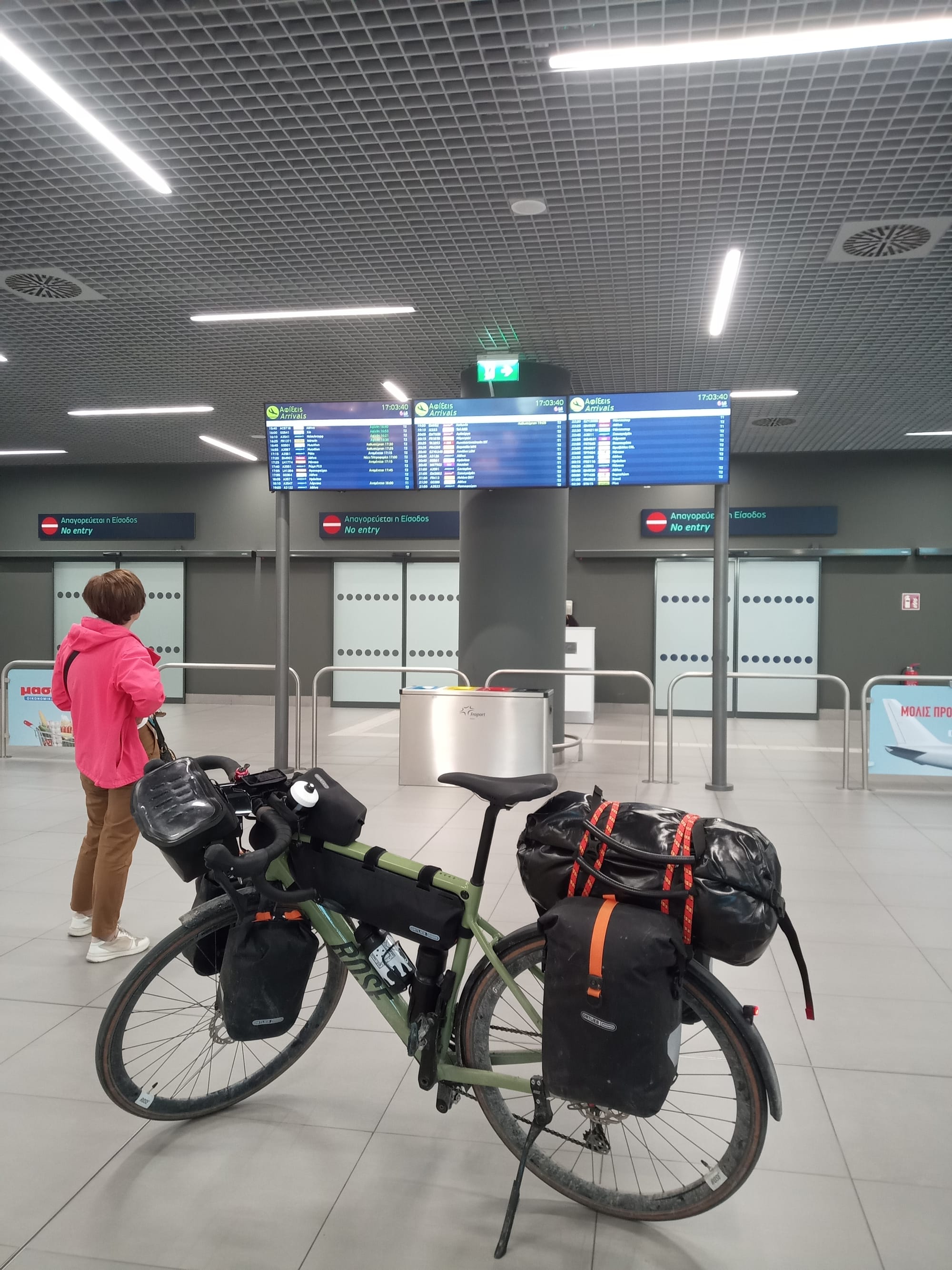 So radelte ich zum Bahnhof und buchte mir ein Ticket online für 10€. Da die Strecke nur zweimal täglich bedient wird (5:20 und 14:20), musste ich noch etwas warten, aber wegen der Zeitverschiebung eine Stunde weniger, und genoss mein Mittagessen. Nachdem Zugunglück in Griechenland von 2023 wird die Teilstrecke Florina bis Edessa nur mit einem Bus bedient, aber die Fahrradmitnahme war kein Problem. In Edessa stieg ich dann in den Zug um und fuhr damit dann durch jedes kleine Dorf auf der Strecke nach Thessaloniki.