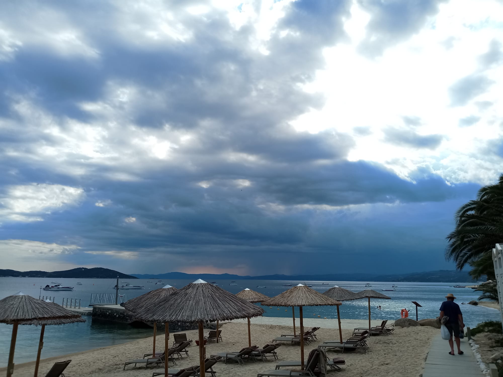 Außer ein paar IT-Updates lag ich nur am Strand, aß gut und genoss die Ruhe. Im Norden Griechenlands regnete es viel, aber nicht bei uns.